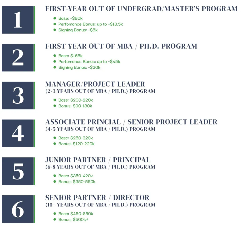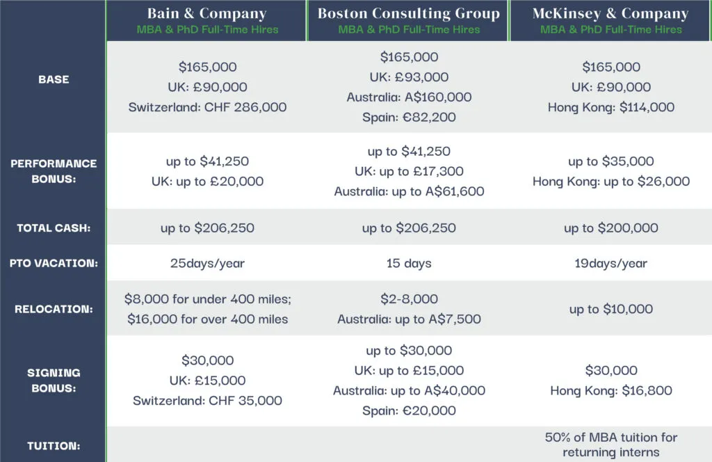 Despite the upheaval in the industry, consultant salaries and career opportunities continue to grow. Both at the undergraduate/master’s and post-MBA/PhD levels, consultant salaries continue to stay competitive to rival Banking and Big Tech.
